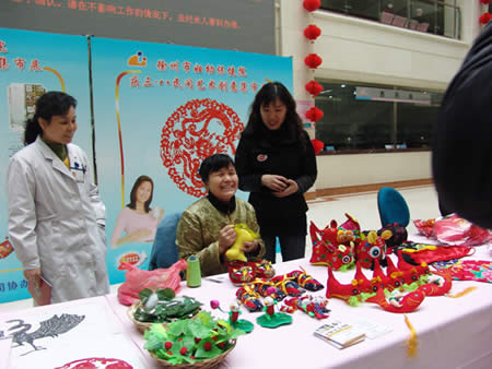 3月6日上(shàng)午,具有濃鬱藝術氣(qì)息的(de)民間(jiān)藝術市集展在(zài)市婦幼保健院拉開了帷幕。四(sì)位(wèi)享有(yǒu)國內外盛譽(yù)的徐州著名的(de)民間藝術家現場獻藝,並展示她們的藝術珍品,引來了眾多的(de)就診者的駐足和(hé)嚐試。