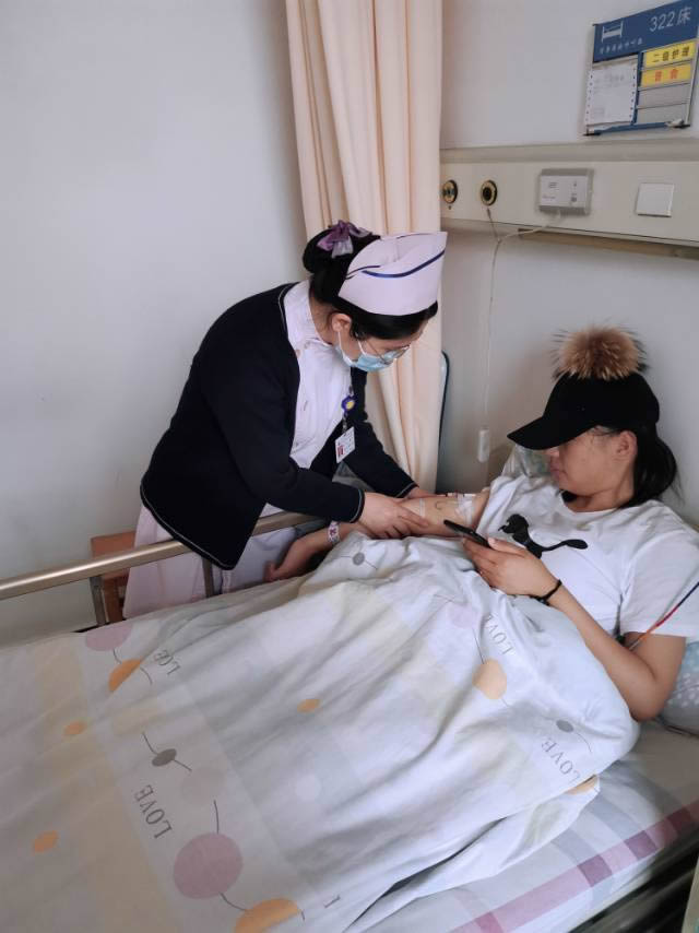 在患者住院期間,護士(shì)長和護士每次去她的病房都會微(wēi)笑著和她溝通,在護理操作過程中盡量體貼輕柔,使患者產生認同感。對於患者的提問,耐心傾聽,並用合理的解釋,以獲得患者的理解。患者感到情緒低落時,適(shì)當的(de)疏導和鼓勵,激發患者的勇氣(qì)和信心。科室內與(yǔ)患者同齡的年輕護士們,更是與患者成為了朋友,常常一(yī)起分享(xiǎng)新鮮有趣的事情。