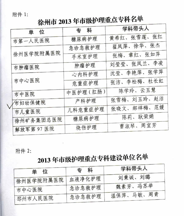 市級婦產(chǎn)科護理重點專科人員名單公示