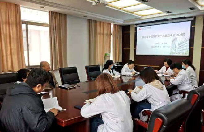 院(yuàn)黨(dǎng)委特別強調各基層黨支部要把學(xué)習貫徹黨的十九屆五中全會精神(shén)作為當前和今後一個時期的重要政治任務,抓好(hǎo)黨員學習教育,聚焦主責主業(yè),以提高醫療服務質量為重點,提升醫療服務水平為抓手,堅持以學促知,以(yǐ)知促行,知行合一,推動十(shí)九屆五中全會精神入腦入心(xīn)、見之行動。