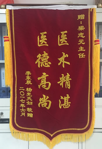 錦旗贈乳腺科梁興忠主任及十七病區(qū)全體醫護人員