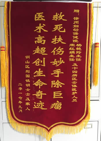 錦旗贈我院宋紅娟、楊豔玲主任及十四病區全體醫(yī)護(hù)人員