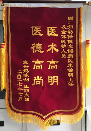 錦旗(qí)贈十病區朱錦明主任及全體醫護人員(yuán)