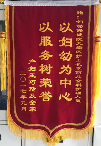 錦旗贈我院九病區護士長李麗(lì)及全科護理人員