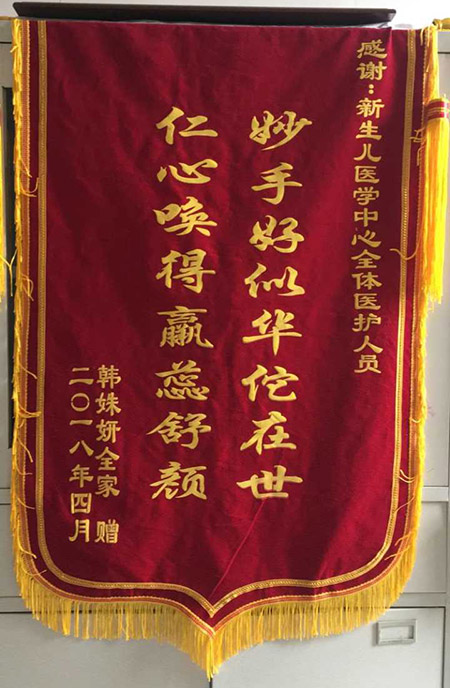 錦旗贈我院新生兒醫學中心全(quán)體醫護人員