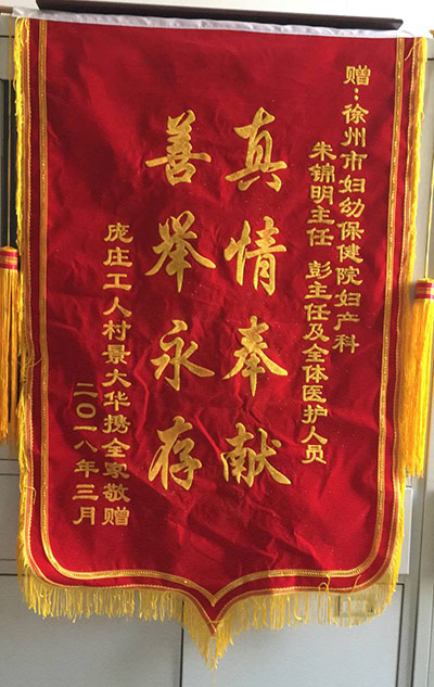 錦旗贈我院婦產科(kē)朱錦明主任等十病區全體醫護人員(yuán)