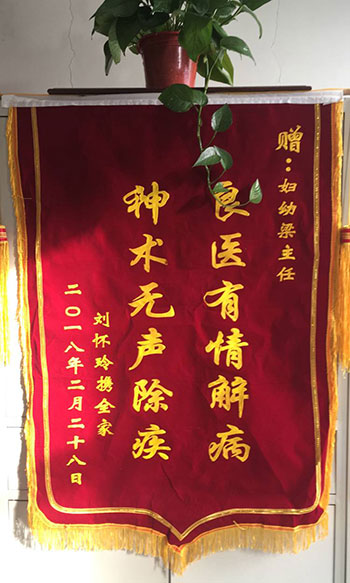 錦旗贈(zèng)我院十六病區吳俠主任及全體護理人員