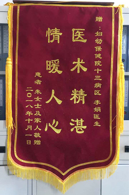 錦旗贈我院兒科姚叢月及醫療團(tuán)隊