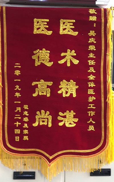 李波贈錦旗感(gǎn)謝我(wǒ)院吳慧瑩醫生