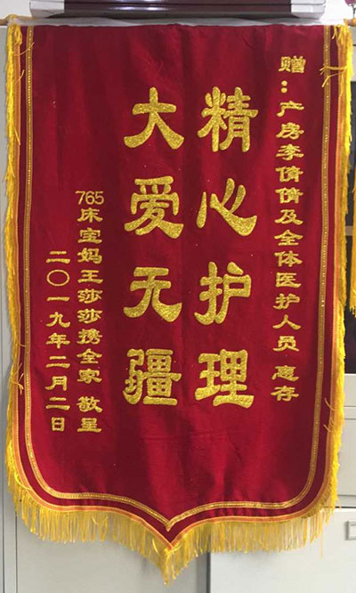 王莎莎贈錦旗感謝我院產房(fáng)李倩倩及(jí)全體醫護人員