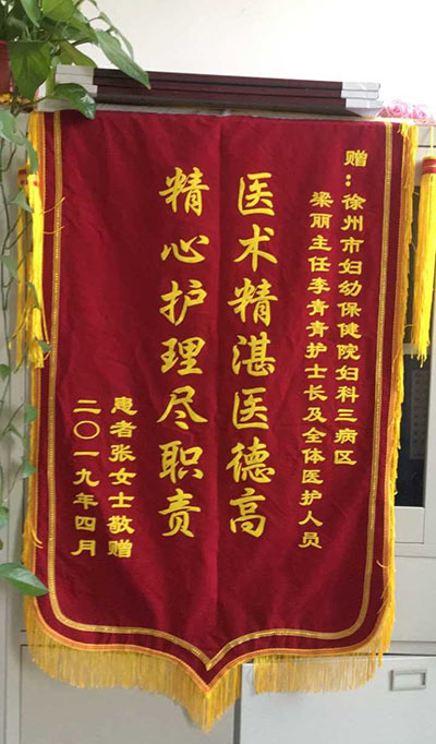張女士贈錦旗感謝我院三病區梁麗、李青青及全(quán)體醫護人員