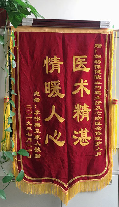 李詠梅贈錦旗(qí)感謝我院王巧蓮及七病區全體醫護人員