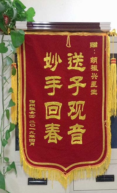 張女(nǚ)士贈(zèng)錦旗感謝我院胡振興