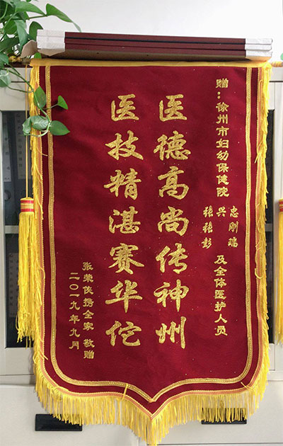 王凍(dòng)玲贈錦旗感謝我院劉佩及產房全體(tǐ)醫護人員