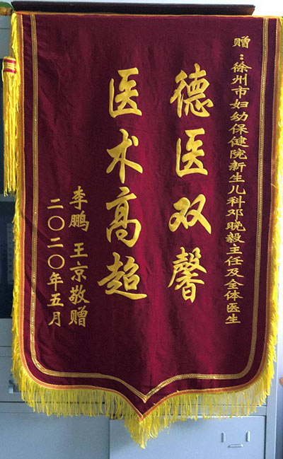 李鵬贈錦旗感謝我(wǒ)院新(xīn)生兒(ér)科鄧曉毅及全體醫生
