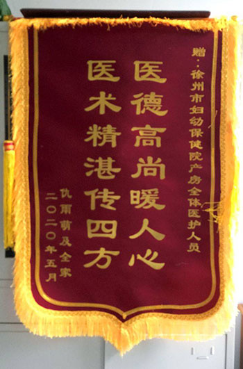仇雨萌贈錦旗感謝我院產房全體醫護人員