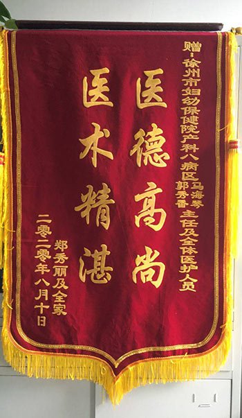 鄭秀麗贈錦旗(qí)感謝我院產科馬海琴(qín)、郭秀香及全體(tǐ)醫護人員