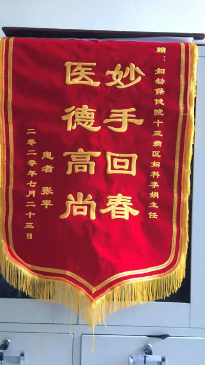 陳豔(yàn)萍贈錦旗感謝我院產科梁誌元