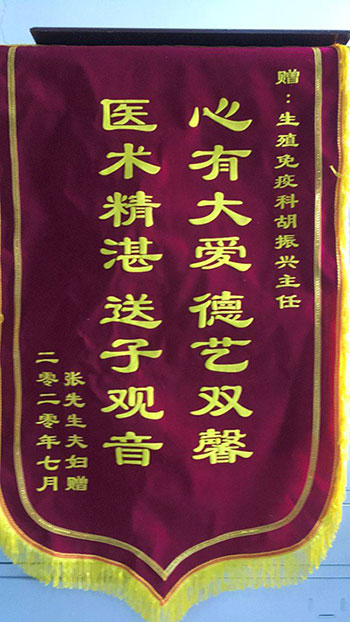 張先生贈錦旗感謝我院生殖免疫科胡振興