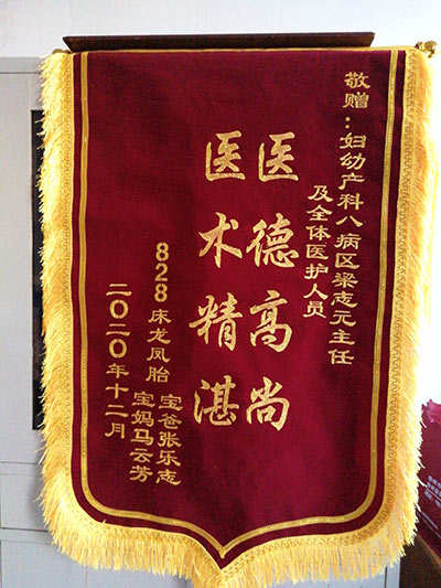 馬雲芳贈錦旗感謝我院產科梁誌元(yuán)及全體醫(yī)護人(rén)員