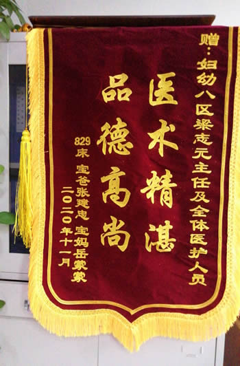 馬雲芳贈錦旗感謝我院產科梁誌元及全體醫護(hù)人員