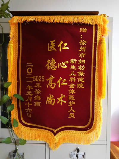 徐海(hǎi)燕贈錦旗感(gǎn)謝我院新生兒科全體醫護人員