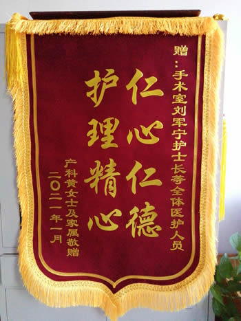 黃女士贈錦旗感謝我院劉(liú)君寧及全體醫護人(rén)員