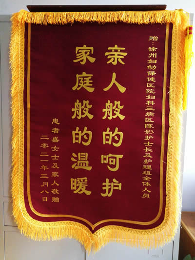 盛女士贈錦旗感(gǎn)謝我院婦科三病區陳影及全體人(rén)員