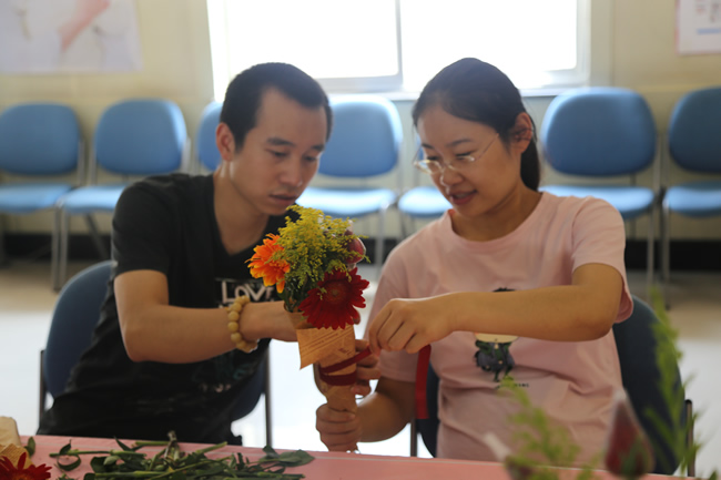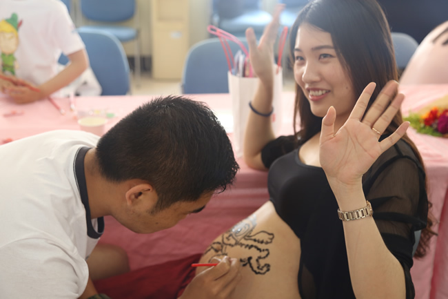 肚皮彩繪秀環節中,大寶們手持畫(huà)筆,用食用級別的健康顏料一筆一畫的認真在媽媽肚皮上繪製各種卡通圖案,將自己對弟弟(dì)妹妹的疼愛都展現在筆下。準(zhǔn)爸們也義(yì)不容辭地當起“畫(huà)師”,他們經過精心設計才最終謹慎下筆,雖然不是專業畫家,偶爾也會遭到孕媽們的竊笑,他們依(yī)然(rán)期待這幅特殊的畫作能(néng)夠獨一無二,通過這樣特別的互動方式,增進夫妻感情,留下美好回憶,迎接新生命的(de)到(dào)來。這邊彩(cǎi)繪秀活動歡聲笑(xiào)語一片(piàn),而現場另一邊手工花藝活動也進行的(de)熱火朝天。火(huǒ)紅的玫(méi)瑰、豔麗的扶郎花,嬌柔的康(kāng)乃馨在孕(yùn)媽們手中綻放光彩。她(tā)們之中更是有不少人為了自己的母親製作花束(shù),他(tā)們細心地剪枝(zhī)、插花、包裝,一舉一動都包含著濃濃的愛。