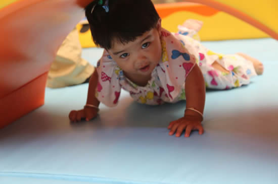 當(dāng)天的(de)比賽根據孩子的興趣和(hé)年齡段分為三個組別,9個月至12個月的寶寶為小天使組,12個月(yuè)至(zhì)15個月為小神童組,15個月至(zhì)18個月(yuè)則是小超人(rén)組(zǔ)。不同年齡段的寶寶(bǎo)參加不同環節的比賽(sài),月齡大的寶寶在爬行過程中還會(huì)遇到各種阻(zǔ)礙,需要爬越“高山”,穿(chuān)越“隧道”,才能達到勝利的終點。