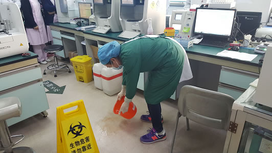 此次活動由感染管理科牽頭,檢驗科、護理部、門(mén)診部、總務科、保(bǎo)潔公司等相關科室人員參加。感染管理科劉淼首(shǒu)先對大家進(jìn)行了相關知識(shí)培訓。檢驗科劉傑主任宣(xuān)布演練開始後,演練人(rén)員按照程序模(mó)擬了標本灑溢(yì)發生後的現場應急處置。