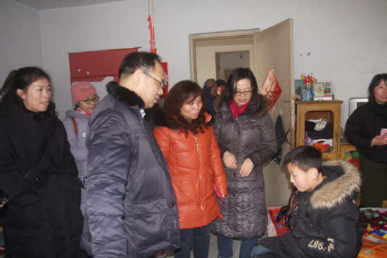 春節前夕,行政二支部和門診(zhěn)藥事支部提前聯係我市“甘霖助學”公(gōng)益機構的夏海燕老師(shī),在(zài)她的引導(dǎo)下,前往惠民小區、茶庵小區和小(xiǎo)劉莊看望6名(míng)貧(pín)困兒童,給他們送去了米、麵、油等生活必需(xū)品,並和孩子們親切交談,詳細詢問了孩子的學(xué)習生活情況,鼓勵他們要(yào)努力學習,長大後做一個對(duì)國家對社會有用的人才。91成人网站通過夏老師(shī)的介紹和現場(chǎng)觀察了解到,這6名孩子大都是父親因病突(tū)然離世,母親改嫁,現(xiàn)在跟著年(nián)邁的(de)爺爺奶奶生活,基本沒有生(shēng)活(huó)來源,生活非常困難,家裏連件像(xiàng)樣的家具都(dōu)沒有。其(qí)中(zhōng)有一家4口擠在十平方左右的地下室,就一張床!臨走時,孩子們依依不舍,他們的(de)爺爺奶奶千恩萬謝,但是大家的心情非常沉(chén)重。