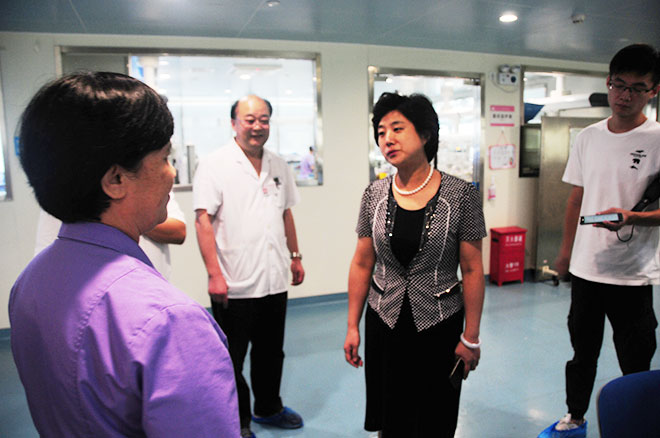 8月18日上午,值首屆“中(zhōng)國醫師節”來(lái)臨之際,副市長李燕、市政府副秘書(shū)長周廣春、市衛生計生委主任吳憲(xiàn)等,親(qīn)臨(lín)我院慰問奮戰在衛生(shēng)與健康一線(xiàn)的醫師,並向全院醫師致以節日的祝賀和問候。院長黃大文、黨委(wěi)書記葛(gě)丕等全體領導班子成員陪同(tóng)慰問。