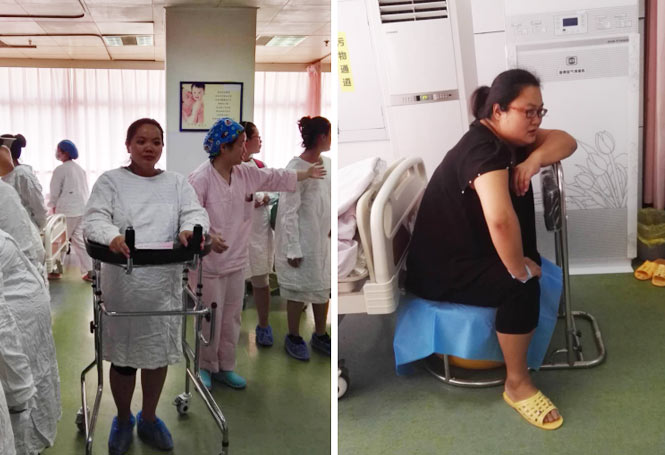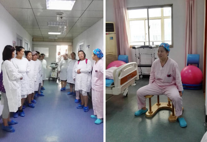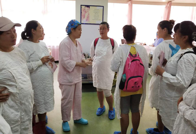 準(zhǔn)媽媽在孕晚期參觀產房,是保健(jiàn)院有史以來第一次麵對(duì)對臨產前(qián)的孕媽媽(mā)開放!夏玉娟主任、張平護(hù)士長非常重視,提前備好了鞋套和隔離衣等,引導孕媽媽分批(pī)對待產室、產房進行了參觀及體驗,產房張護士長(zhǎng)給孕媽媽詳細講解了我院產房開展的陪伴分娩、導樂分娩、自由體位分娩等促進自然分娩的具體措施及活動展示,部(bù)分準媽媽在護士長的指導下親自體驗(yàn)了導樂球、分娩車、分娩凳等輔具。