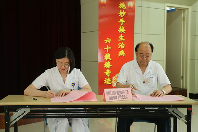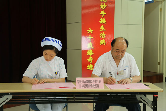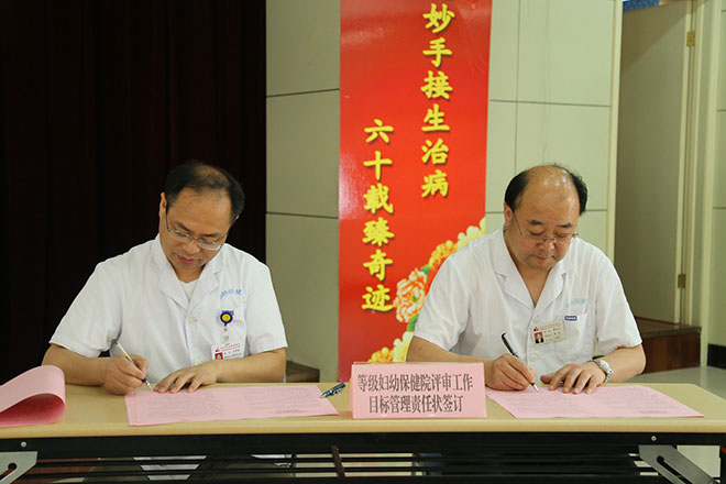 動員部署後,院長黃大文與臨床醫技科室(shì)和相關職能科室負責人簽署了等級婦幼保健院評審(shěn)工作(zuò)目標管理責(zé)任(rèn)狀。
