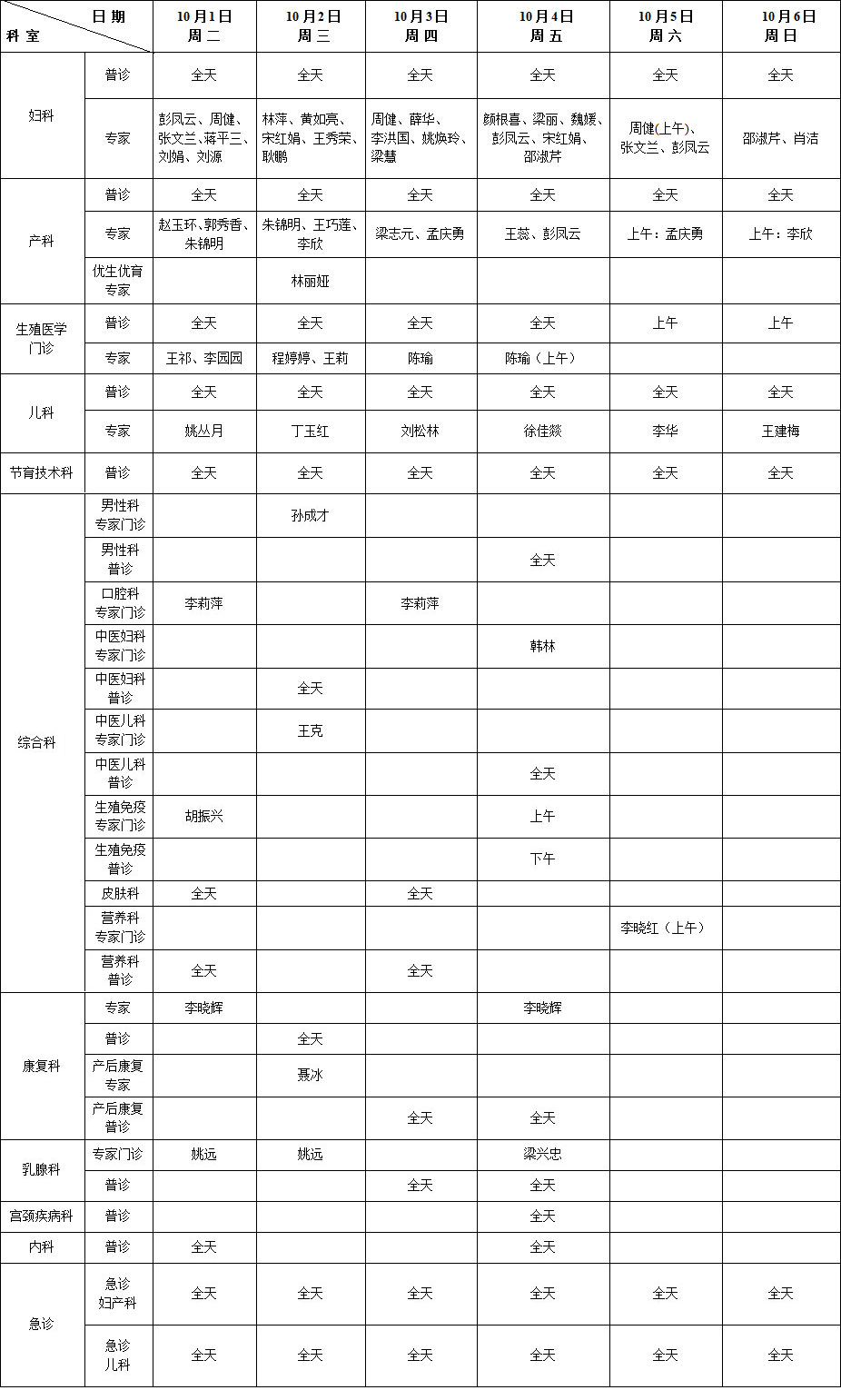 婦(fù)科、產科、兒科、生殖醫學中心、節育(yù)技術科門(mén)診正(zhèng)常工作。