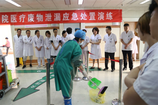 9月27日上午,我院在急診大(dà)廳進行醫療廢物泄露(lù)應急處置演練。副院長張克求、院長助理張雪梅出席並任總指揮,感染管理科、人事科、財務科、審計科、醫教科、護理部(bù)、總務科、信息科、保衛科、門診(zhěn)部、遺傳中心、藥事科、檢驗科、病理科、物業公司及其他職能(néng)科室負(fù)責人參加此次演練。