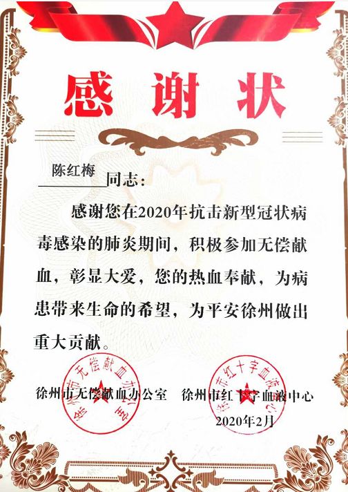 2月15日是個周六,上午10點多,徐州市婦幼保健(jiàn)院陳紅梅護(hù)士長走進了世貿獻血站,一次性獻血400毫升。