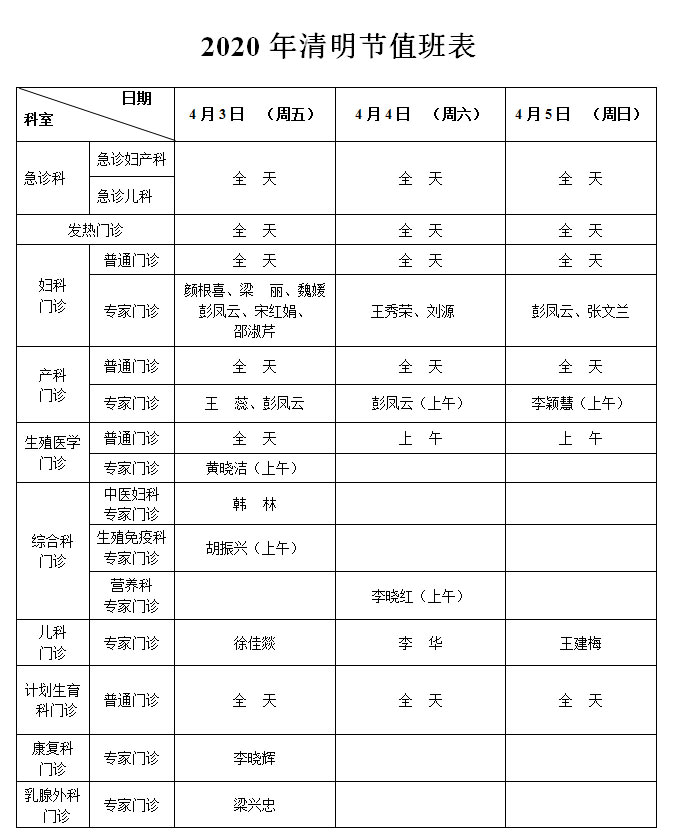 徐州(zhōu)市婦幼保(bǎo)健(jiàn)院2020年清明節放假時間為