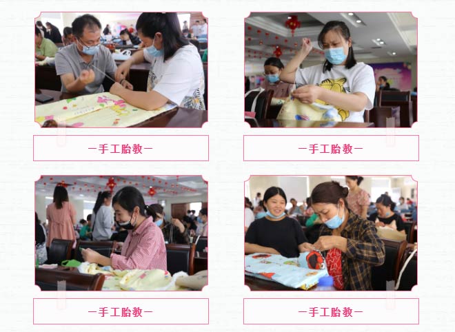 在手(shǒu)工胎教環節,準媽媽們親手(shǒu)為寶寶縫製小包被,一針一線(xiàn)都飽含著媽媽的愛(ài)和希望。