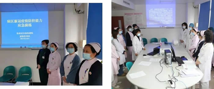15:30各相關(guān)科室(shì)負責人在七樓醫生辦公(gōng)室集合,感染管理科副科長劉淼進(jìn)行了(le)病區新冠肺炎防控要求、演練內容及處置流程培訓,培訓後副院長張雪(xuě)梅宣布演練開始。