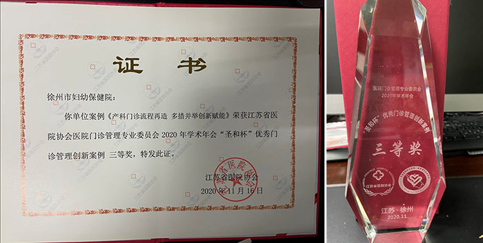 會議表(biǎo)彰了“優秀門診管(guǎn)理創新案例”,徐州(zhōu)市婦(fù)幼保健院申報的《產科門診流程(chéng)再造多措並舉創新賦能》案例榮獲三等(děng)獎。