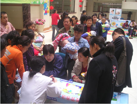 10月13日,市婦幼保健(jiàn)院(yuàn)門診大廳舉行了(le)一場別開生麵的“迎奧運、金豬(zhū)寶寶爬行大賽”,來自全市500多名兒童,1000多名家長參加了這次盛會。經過(guò)嚴格的篩選,由26名金(jīn)豬寶(bǎo)寶參加(jiā)了奧運健兒的最後角(jiǎo)逐(zhú)。這次陽光健兒活動是繼陽光孕育快樂母(mǔ)親活動的延續。旨在讓家長學會如何科學養育,促(cù)進寶寶在體能、智(zhì)能、動作能等方麵得到全麵和諧(xié)健康的發展。受到了社會各(gè)界的積極參與和歡迎。