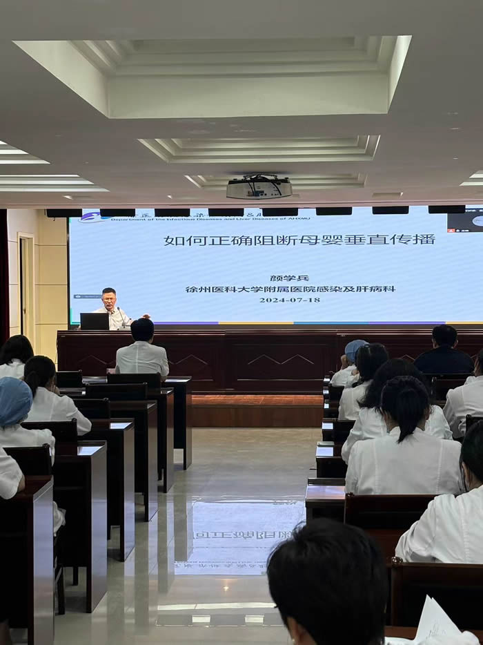 此次培訓邀請了徐州醫科大學附屬醫院感染(rǎn)科主任顏學兵教授、徐州(zhōu)市傳染病醫院傳(chuán)染科張鳳池主(zhǔ)任講課(kè),授課內容涵蓋了艾滋病梅毒和乙肝母嬰傳播阻斷方法及所生嬰兒的隨訪。參加培訓有(yǒu)產科、婦(fù)科、新(xīn)生兒科、生殖醫學科、檢驗科、保健部、門診相關(guān)科室醫護人員。培訓前王(wáng)海艦(jiàn)副院長(zhǎng)、產科朱錦明(míng)主任分別就消除艾梅乙母嬰傳播(bō)工作致辭。