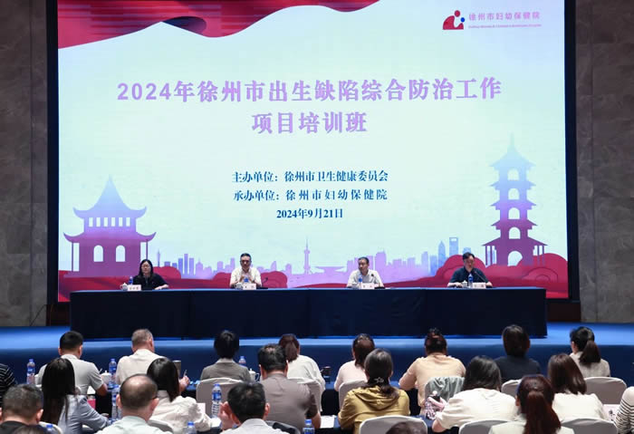 為進一步推進我市(shì)出生(shēng)缺陷綜合防治項目(mù)工作,紮(zhā)實提高從業人員產前篩查與診斷、新生兒疾病篩(shāi)查與診斷等(děng)出生缺陷綜合防治工作服務能力,9月21日,由徐州市(shì)衛生健康委員(yuán)會主(zhǔ)辦,徐州市婦幼保健院承辦的(de)2024年徐州市出生缺陷綜合防(fáng)治工作項目培訓班順利召開。徐州市衛生健康委黨委委員、副主任(rèn)王(wáng)凱,徐州市衛生健康委婦幼健康處處長呂雲慧,徐州市婦(fù)幼保健院黨委書記曹永出席,徐州市(shì)婦幼保健院副院長彭磊主持(chí)會議。全市各縣(市、區)衛生健康委副主任(rèn)、婦幼科科長,婦(fù)幼保健機構負責人、相關業務負責人,各級各類醫療保健機構(gòu)從事出生缺(quē)陷(xiàn)防治相(xiàng)關(guān)工作的醫務(wù)人員參加培訓。