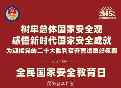 今年(nián)4月(yuè)15日(rì)是(shì)第七個全民國家安(ān)全教育日,主題:圍繞“樹牢總體(tǐ)國家安全觀,感悟新時代國家安全成就(jiù),牢牢(láo)守護邊海防安(ān)全,為迎接黨(dǎng)的二十大勝利召開(kāi)營(yíng)造良好氛圍”...