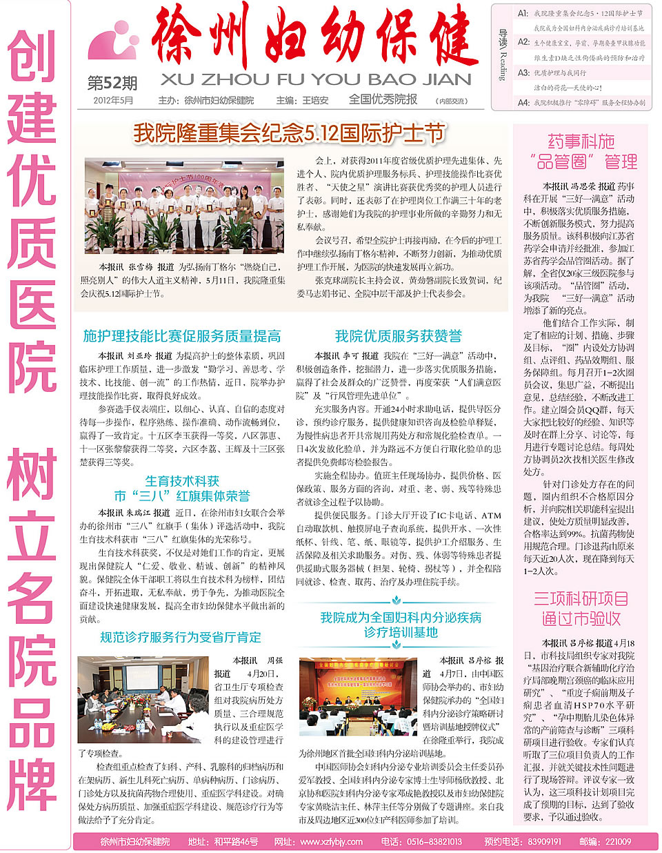上一(yī)篇:徐州(zhōu)市婦幼保(bǎo)健院院(yuàn)報第51期(2012年(nián)3月)