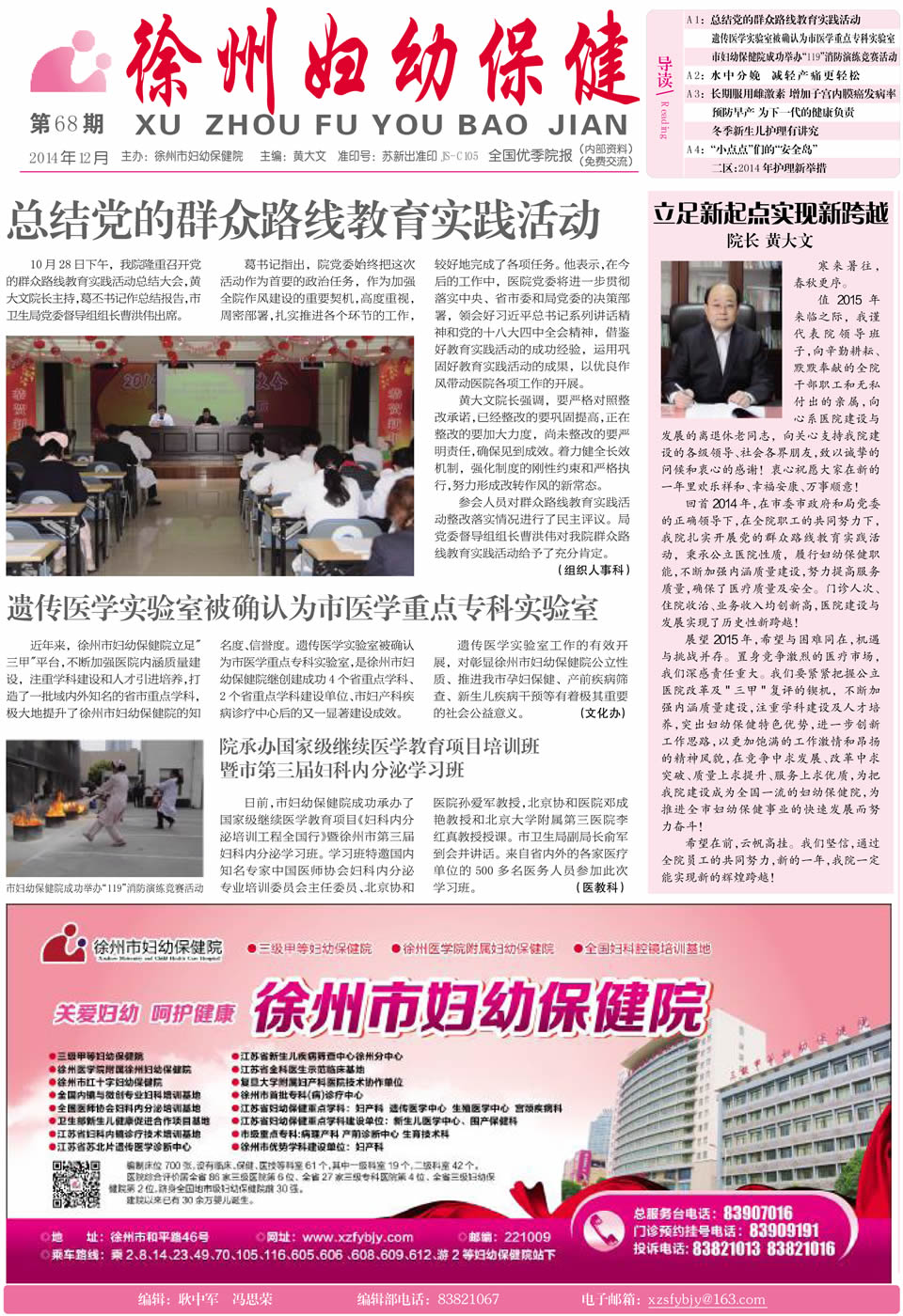 徐州市婦幼保(bǎo)健院院報(bào)第68期(2014年12月)