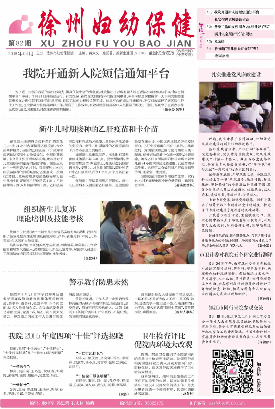 徐州市婦幼保健(jiàn)院院報第82期(2016年4月)