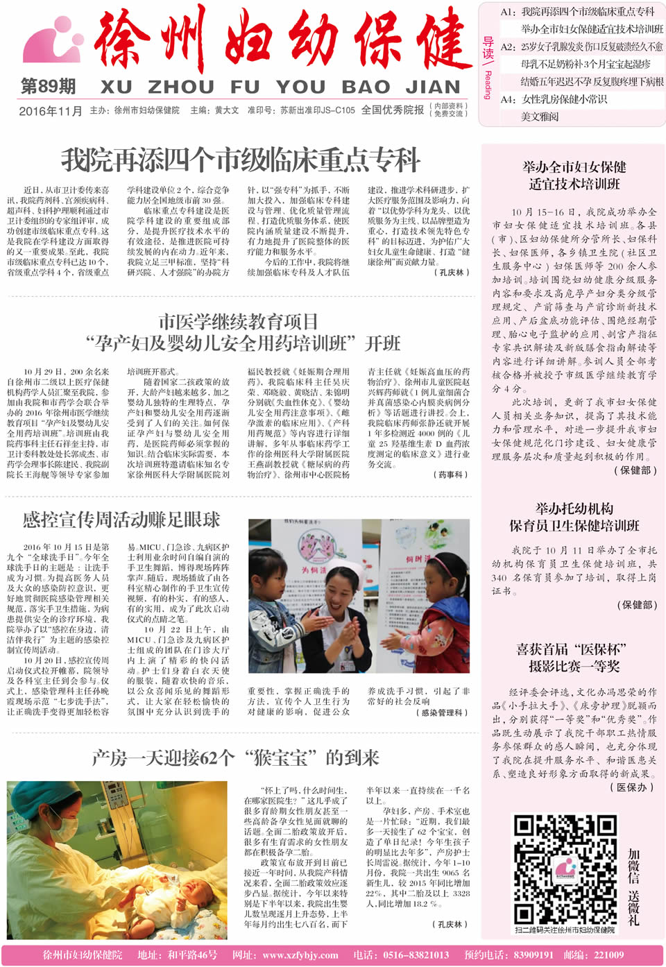 徐(xú)州(zhōu)市婦幼保健院院報第89期(2016年11月)